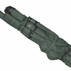 Entnahme des Inhalts besitzt die längere Seitentasche auch am unteren Ende einen Reisverschluss. In dem großen Hauptfach lässt sich spielend weiteres Tackle, wie Kescher, Wiegematte, Wurfrohr und Schirm oder sogar ein schmales Zelt unterbringen. Durch den extra dick gepolsterten Neoprenschultergurt, lässt sich dieses Transportwunder auch voll beladen noch sehr komfortabel zum Angelplatz tragen.