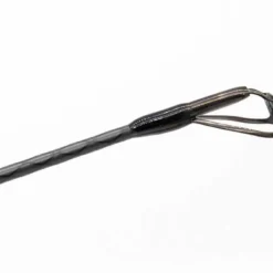 Der Blank ist aus hochmoduliertem Carbon gefertigt und mit einem rauchmatten Finish, Kreuzgewebe-Streifen und schwarzen Zierwicklungen versehen. Das verleiht dieser modernen High-End-Rute einen typischen klassischen Retro-Look.